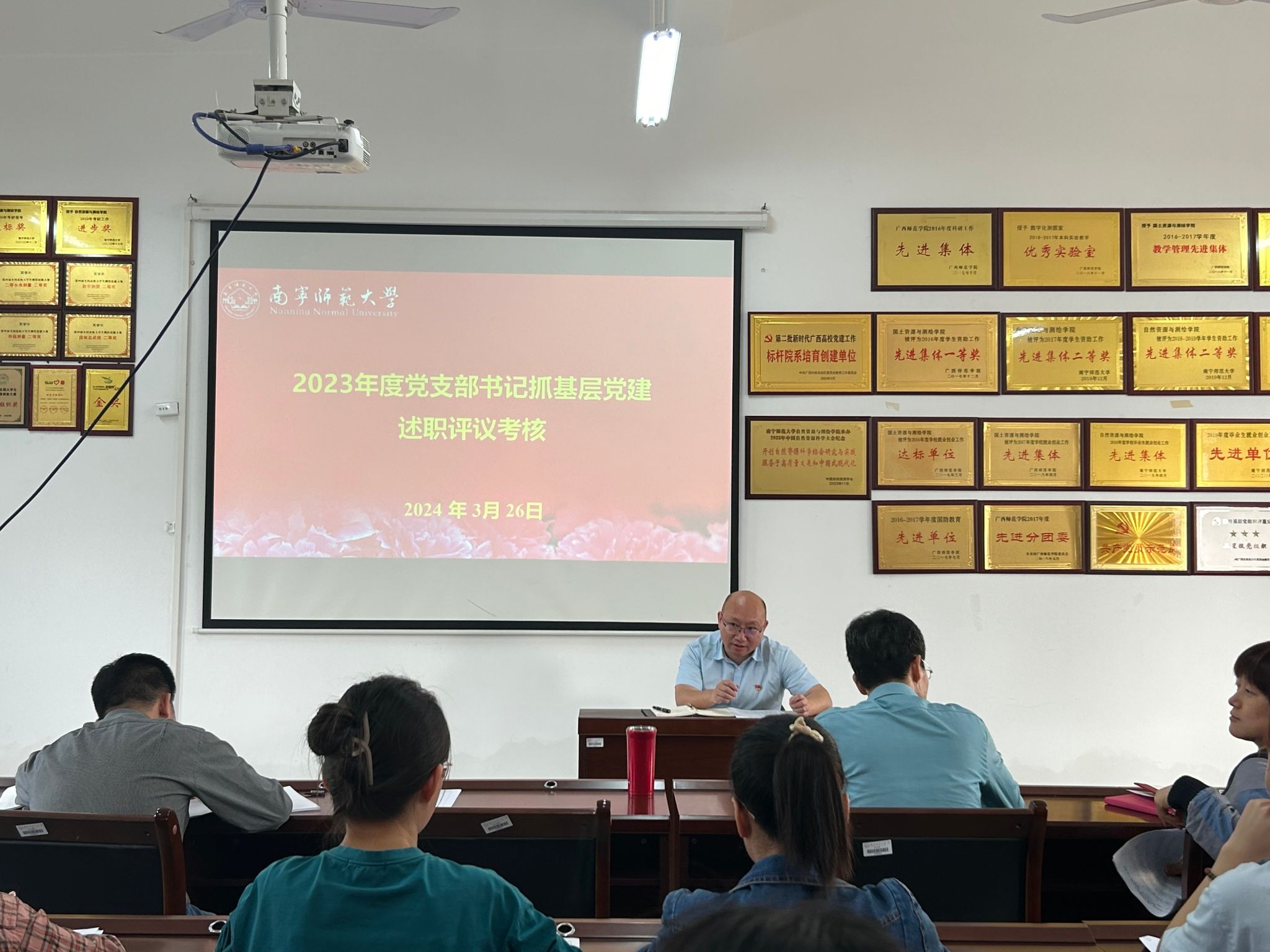 为推进学院全面从严治党工作走深走实,落实党建工作责任制,学院于3月26日在地源楼A412举行2023年度党支部书记抓基层党建述职评议考核会。学院党委书记黎先,党委组织员彭定新、张慧荣出席会议,全体党支部书记及学院党员代表、群众代表参加会议。
