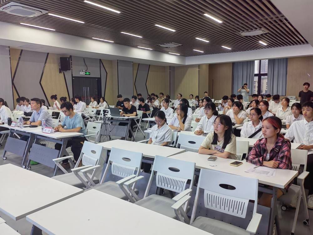随着比赛的正式开始,每支队伍按照事先抽签决定的顺序依次上台。各个队伍的代表自信地走上讲台,开始了他们精心准备的PPT汇报。选手们井然有序、条理分明地展示了团队的创新思维和实践能力,并在汇报过程中不断调整汇报节奏,确保在规定时间内完成汇报。汇报结束后,评委对参赛队伍进行了提问,队伍成员们沉着应对,对问题进行了深入而有见地的回答,进一步展示了他们对项目的深刻理解和对专业知识的掌握。