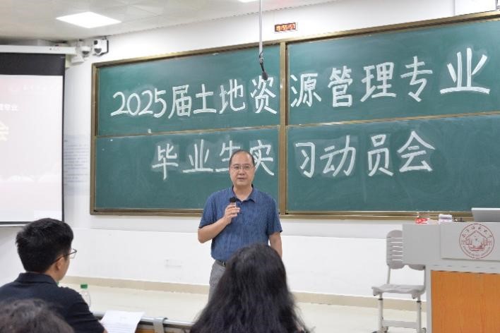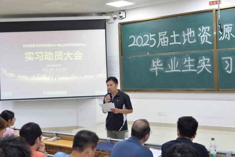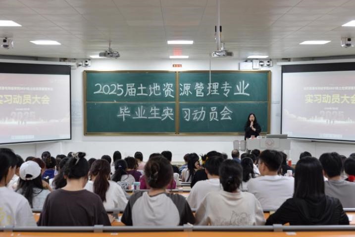 7月5日晚,必赢3003no1线路检测中心土地资源管理系2025届毕业生实习动员大会在一号教学楼115阶梯教室隆重举行。土管系党支部陆一敢书记、系主任刘少坤老师、副主任张利国老师及欧梦琳老师出席会议,21土管1班、21土管2班级21土管专升本班141名同学参加,共同为即将踏上实习岗位的同学们精心筹备了一场别开生面的实习前动员大会,旨在为同学们搭建起通往职场的坚实桥梁。