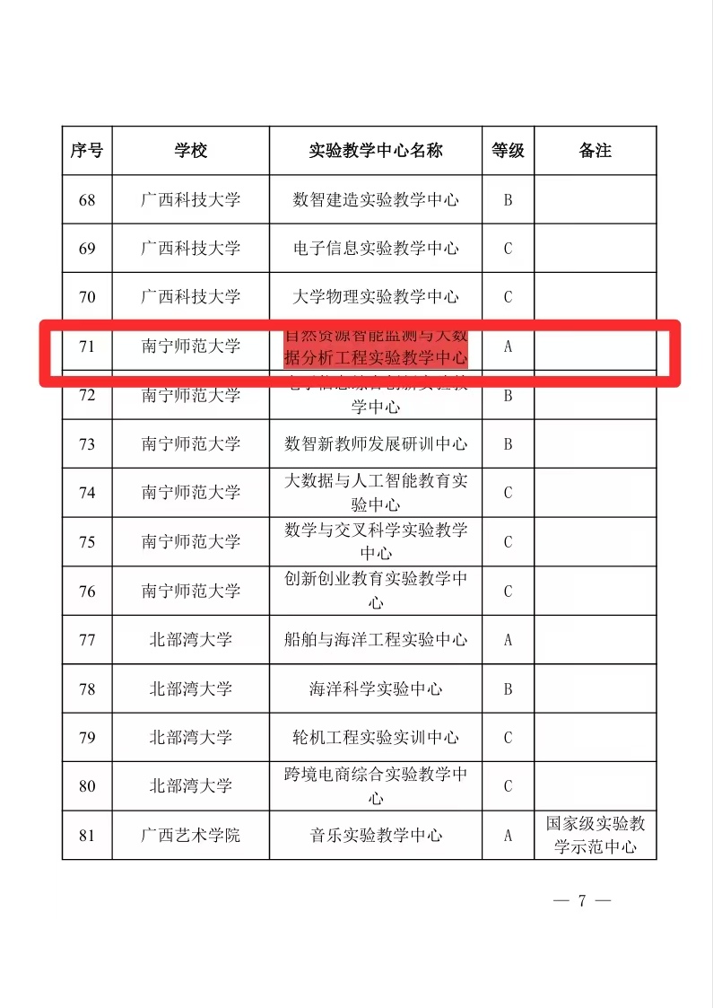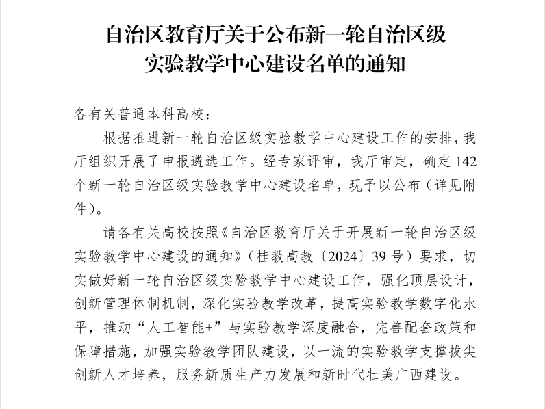 根据《自治区教育厅关于公布新一轮自治区级实验教学中心建设的通知》(桂教高教[2025]6号),经专家评审,自治区教育厅审定,必赢3003no1线路检测中心必赢3003no1线路检测中心段炼教授牵头申报的“自然资源智能监测与大数据分析工程实验教学中心”成功入选自治区级实验教学中心,且为本轮评选中必赢3003no1线路检测中心唯一的A类中心。该中心既是学院实施党建引领高质量发展工程成果,也是继学院成功获批“卫星+”空间AI自然资源智能治理广西高校工程研究中心后,又一项教学科研平台的建设成果。