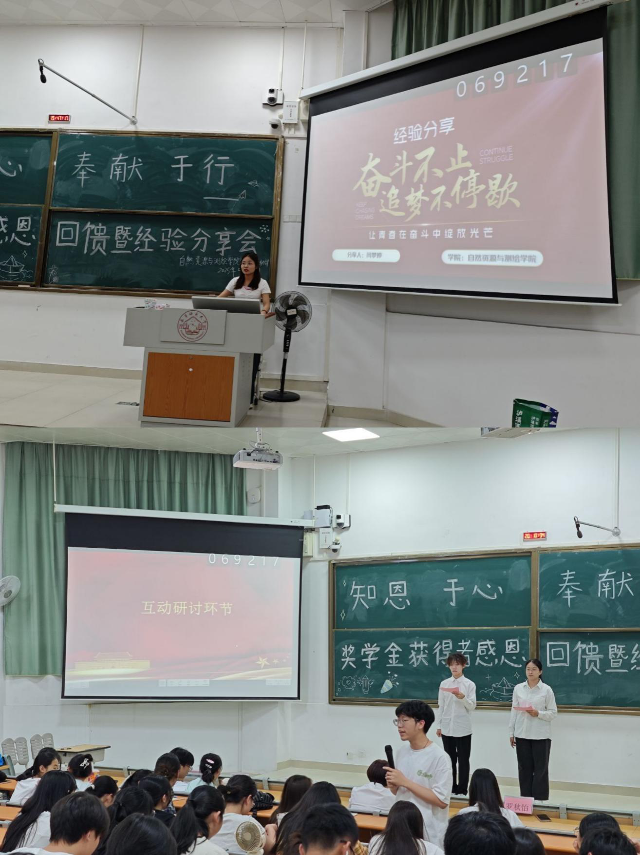 活动伊始,主持人深入阐释奖学金的育人内涵,号召全体同学以优秀学子为榜样,积极奋进。随后,来自不同奖项的获奖者依次登台,围绕学习规划、竞赛策略、社会实践等多个维度,倾囊相授宝贵经验,同时深情表达对学校培育、师生支持和家人关爱的感恩之情。在互动环节中,同学们围绕学习目标确立、学生干部工作收获、乐观心态保持等成长议题积极提问,现场气氛热烈,充分彰显了青年学子昂扬向上的精神风貌。