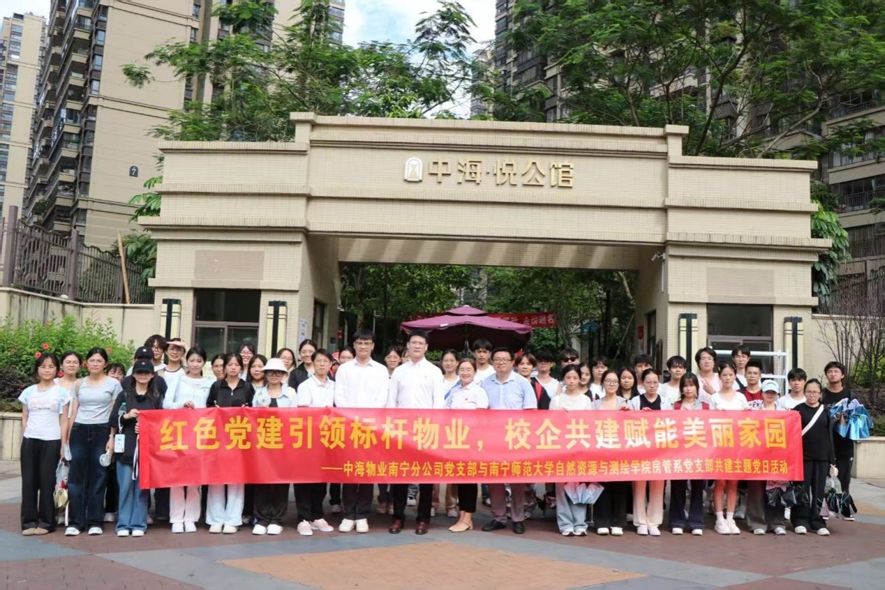 6月26日下午,必赢3003no1线路检测中心房地产开发与管理系教工党支部党员、房地产开发与管理系本科生党支部及本科生共同前往中海物业南宁分公司开展党建共建主题党日活动。此次活动以“红色党建引领标杆物业,校企共建赋能美丽家园”为主题,校企双方党支部成员共同交流党建经验,签订了党建共建协议,探讨合作内容。