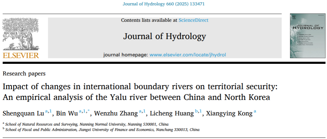 Journal of Hydrology(中科院一区TOP,SCI-Q1)发表了题为“Impact of changes in international boundary rivers on territorial security: An empirical analysis of the Yalu River between China and North Korea”的研究论文。文章利用多源数据,重建了过去83年的中朝界河历史河道,分析了其演变模式和形态变化,并建立了界河变化评估框架,以探讨沿岸国家的国土安全风险。该文由团队吴彬副教授为通讯作者,硕士研究生卢盛权为第一作者共同完成。