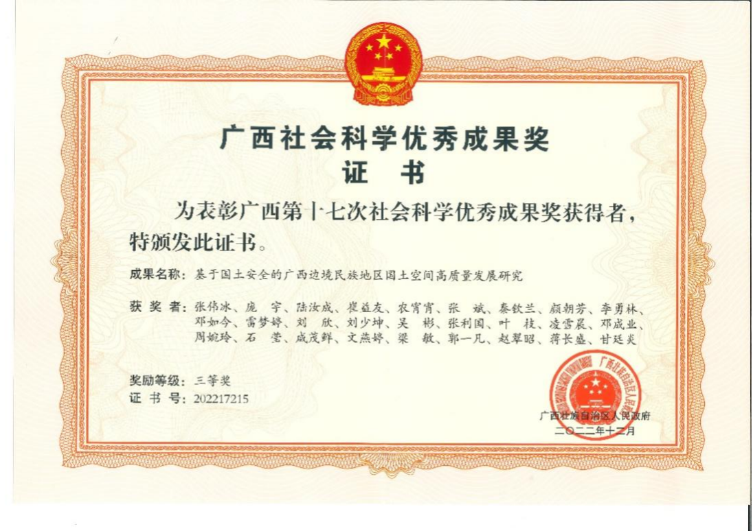 该团队基于广西边境地域特色,致力于开展中越边境土地利用对地缘经济与疆土安全的影响效应与机理研究。研究方向包括:中越跨国界国土空间演变与地缘安全、中越河口三角洲国土形态演变与疆土安全、边民土地利用行为与地缘安全、中越边境建设用地转型与地缘安全。目前获得4项国家自然科学基金项目,发表边境土地利用论文40多篇。